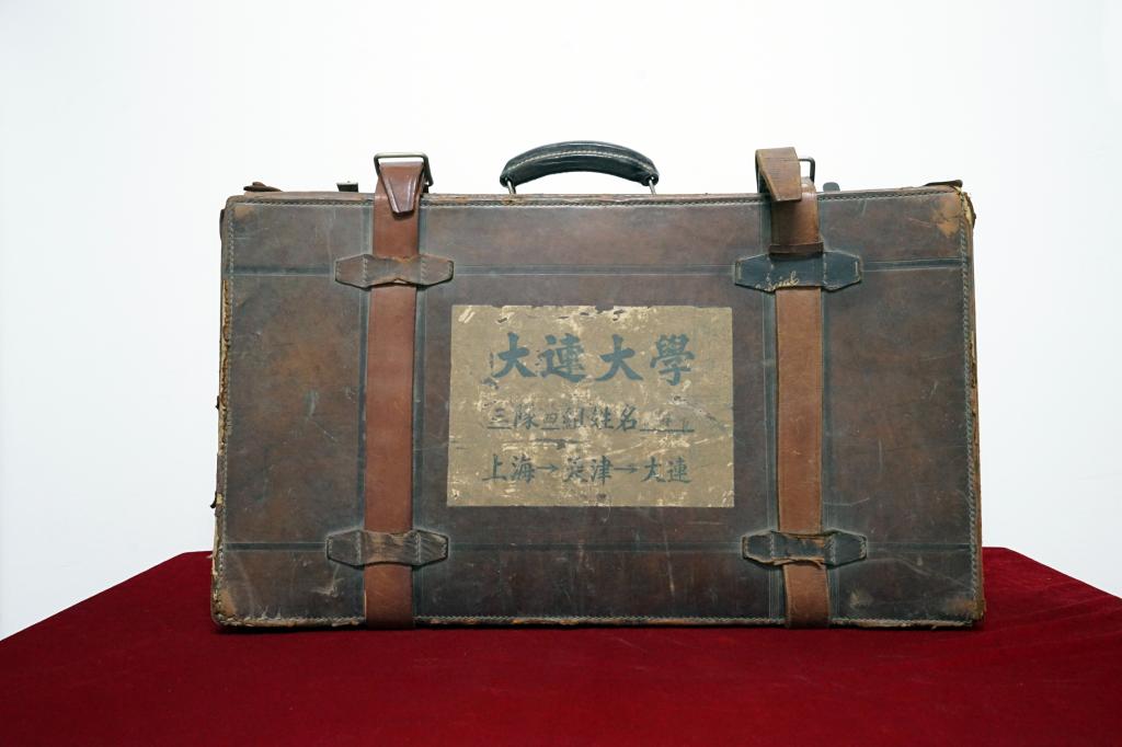 上图是文章开头提到过的皮箱,当年周经纬就是提着这个皮箱,由上海经天津,辗转到大连求学,2014年5月7日,周经纬的小儿子周东将这个珍贵的皮箱捐赠给档案馆保管。2015年6月9日首届档案馆开放日中,这个皮箱作为重要的展品之一,吸引了在校师生的极大关注,周经纬远在美国的大儿子周钢通过网络看到了父亲当年的皮箱,非常感动。