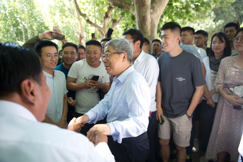 步出校史馆,陈宝生来到大学生中间,与同学们一一握手。“学的是什么专业”“现在是几年级?”“家是哪儿的?”“做的是什么实验?”陈宝生与学生亲切交谈,勉励他们珍惜在校时光,锤炼过硬本领,担当复兴使命,在实现中国梦的伟大实践中成就人生理想。