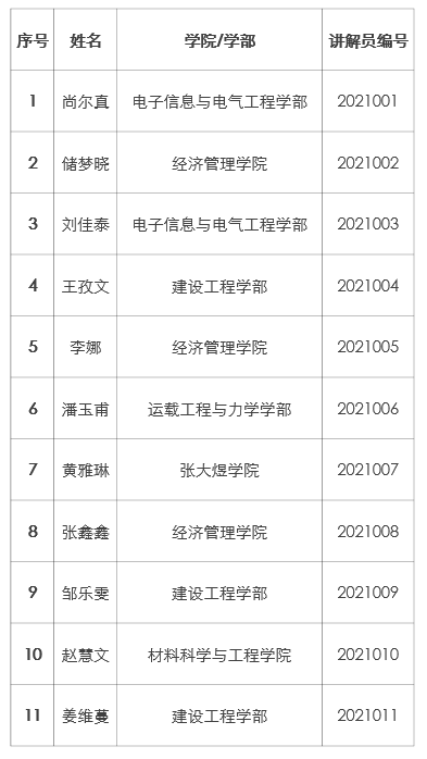 4月12日,校史讲解团对报名的36名同学进行了初面。同学们对面试进行了充分的准备,自信、从容地展现了自己的语言表达能力及对加入校史讲解团的热切期望。经过激烈竞争,最终有21名同学脱颖而出,成为了预备役讲解员。