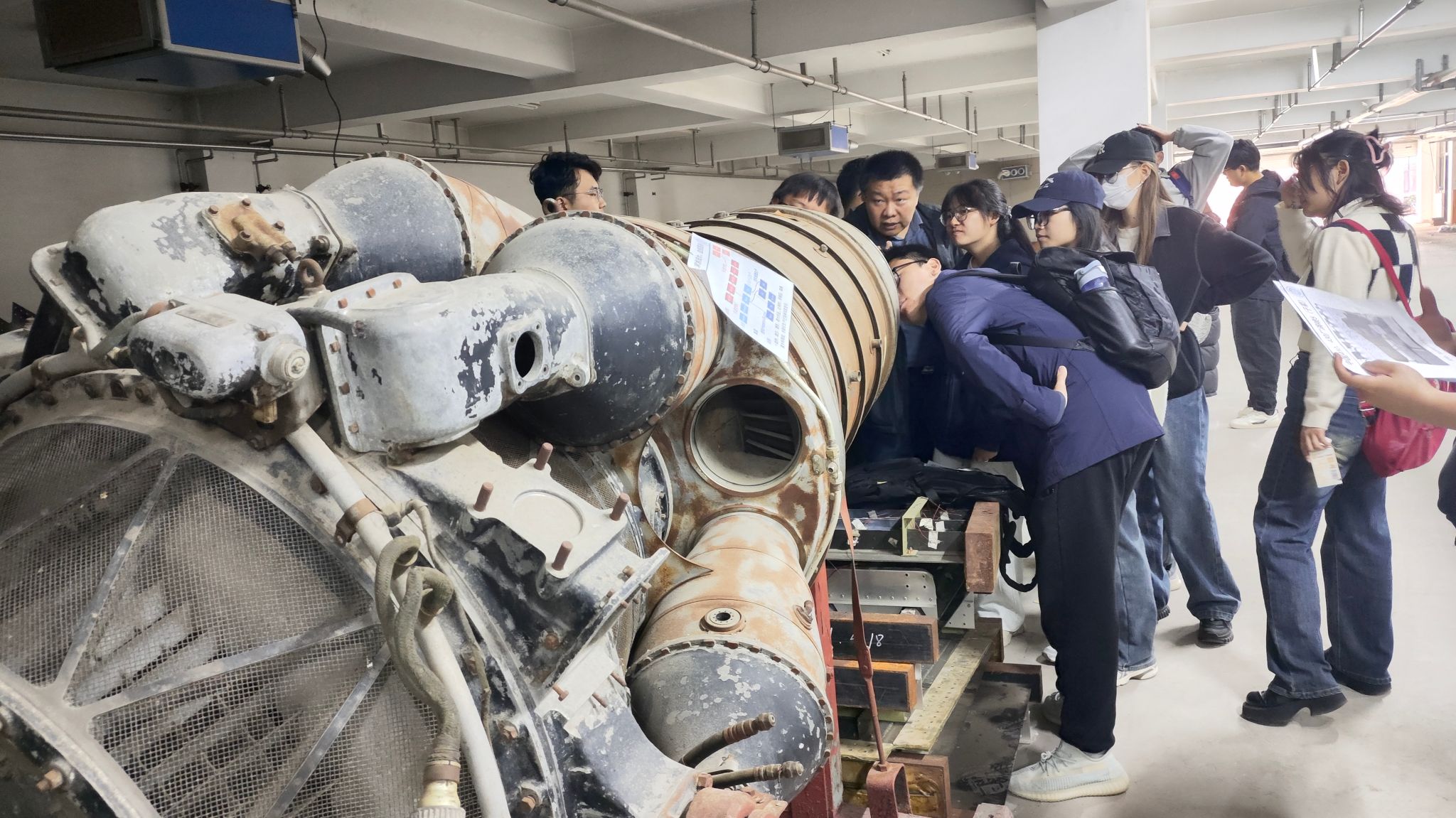 4月20日,能动学院吕东教授将2021级吴仲华班《航空发动机概论》课程教学搬到了位于研教楼负一层的档案库房,面对这台尘封的“米格15”战斗机发动机,通过一堂独出心裁的现场教学,让同学们直观了解航空发动机的机械结构,提升专业课教学效果。同时,以人类历史上首次大规模喷气式战斗机空战拉开讲解序幕,以抗美援朝这一重大历史事件为背景,带领同学们重温世界航空发动机的发展历程,通过讲述这台发动机的“前世今生”,厚植学生爱国主义情怀。