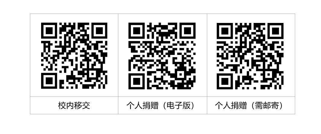 2.档案馆(校史馆)可为捐赠者提供扫描服务,捐赠者可将照片邮寄至档案馆(请另附姓名、联系电话及通讯地址),扫描后将原件寄回。